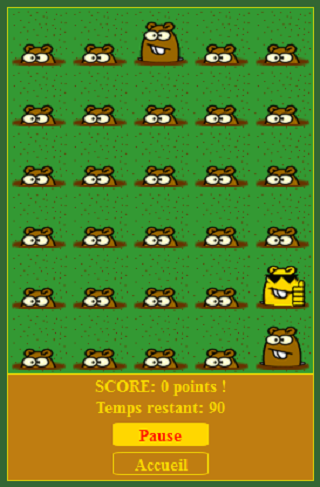 Wack A Mole for FirefoxOS Il s'agit d'un simple tape taupes où vous devez faire le meilleur score ! Si vous voulez contribuer : https://github.com/MatthFleury/WackAMole -------------------------------------------------------------------------------------- It's a simple Wack a mole where you have to do the best score If you want to contribute : https://github.com/MatthFleury/WackAMole