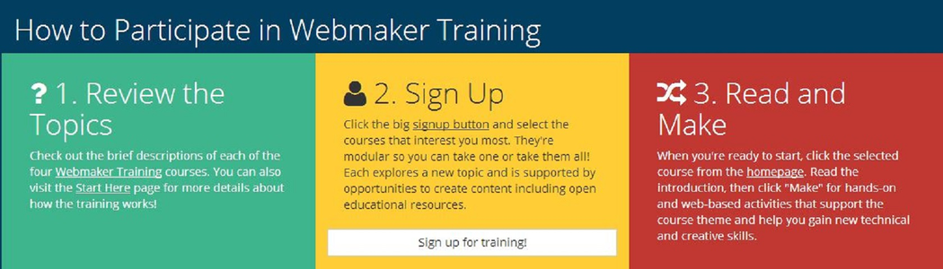 Sign up for Webmaker and also Know how to Participate in Webmaker Training.This quick look guide will help you get the most out of Webmaker Training, whether you're new to this community or an active contributor.