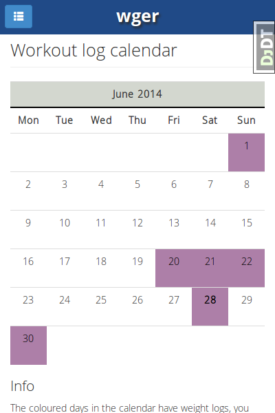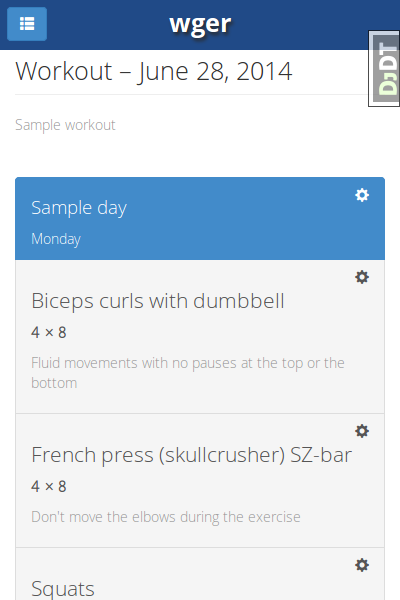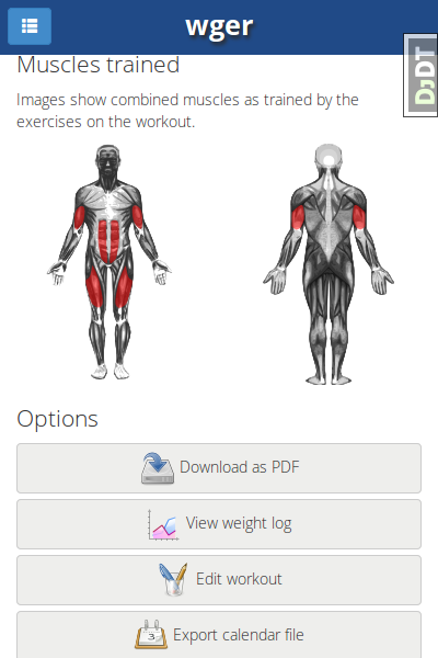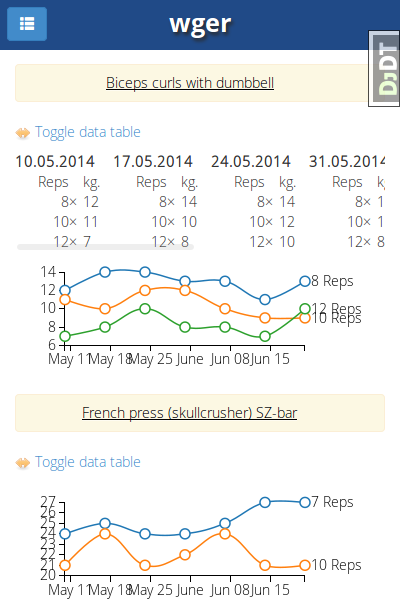 wger Workout Manager is a free, open source application that manages your exercises, workouts, weight and diet plans. The workout manager allows to create basically any routine you need by selecting the days your workout consists of and adding different exercises and repetitions to each. You can print the workout as a PDF to keep a log for 7 weeks, but you can also enter the data directly in the website. This helps you keep track of your progress with the weight log chart for each exercise and your own body weight and makes it easy to see if you are reaching your goals or need to adjust something. In the interactive "Gym-mode" the app will show you on an optimized view which exercises you have to do while at the gym. The weights will adapt to your level, they are retrieved from your last logs. A timer helps you keep the pauses short but they can be changed or skipped altogether if you wish. With the nutrition manager you can create a diet plan and see the nutritional values (total energy, protein, carbohydrates, and so on) about it. The BMI and the daily calories calculators help you assess how many calories you need. The app is a wrapper with small modifications around the mobile version of https://wger.de, that's why the app needs internet access. Of course, all entered data can be accessed through a browser later. The app is Free/Libre Open Source (FLOSS) and is licensed under the AGPL 3+. The source code can be downloaded from github Suggestions or comments are always welcome: * Email * issue tracker
