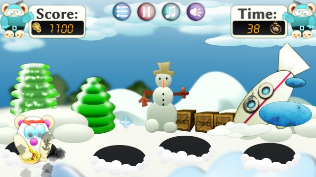 Winter themed whack-a-mole style game for all ages. You have one minute to collect as much as possible. Mole with dynamite and angry grandma will decrease your points if you hit them.