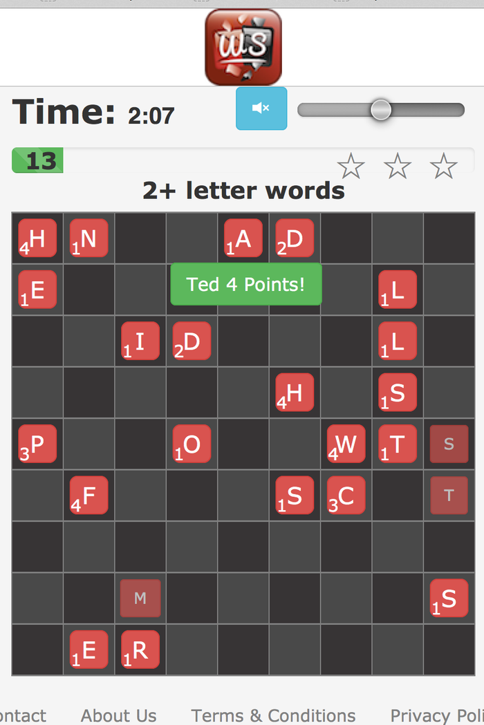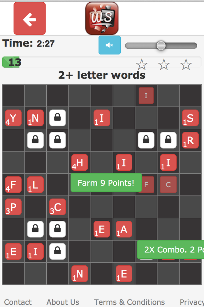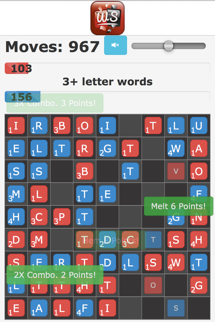 Make words! lots of words! two at once! heaps in a row! then you'll get bonus points! Get words up, down, forward and backwards! On easy, get words with 2+ letters, on medium 3+, Hard 4+! When the board fills up its game over!