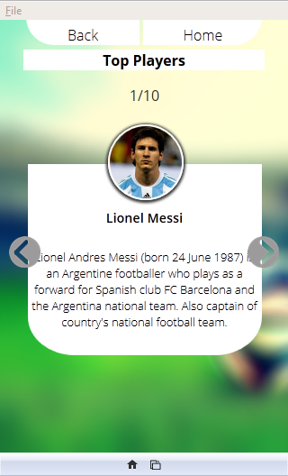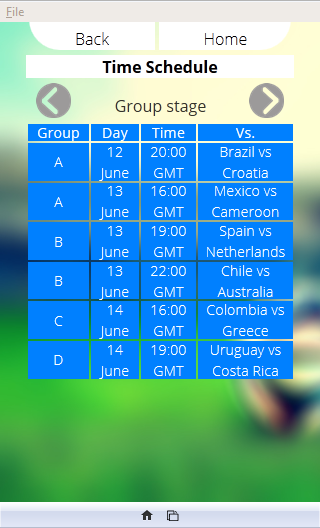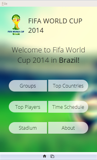 This apps is based on FIFA World Cup 2014. In where user can get the info of top countries with their international playerlists of FIFA World Cup 2014. User can get the info of 2014 top ranking players names, FIFA World Cup 2014 Groups info, World Cup 2014 time schedule and in which stadiums FIFA World Cup 2014 games are running in Brazil. This is an offline app, so no internet connection is needed to run this app. Enjoy!!