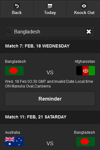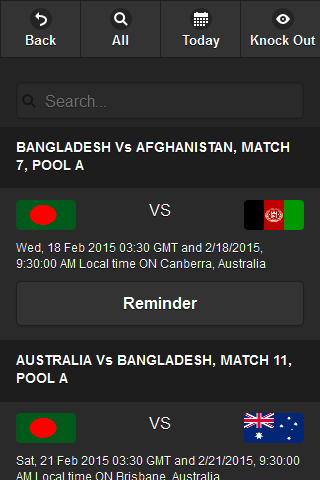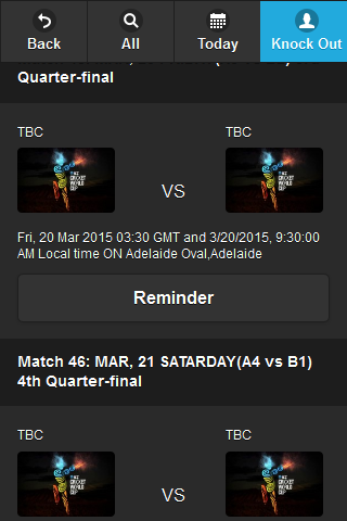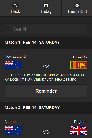 World Cup Schdule is app will give all schdule of the ICC world cup 2015 matches and you can also set a reminder for a match