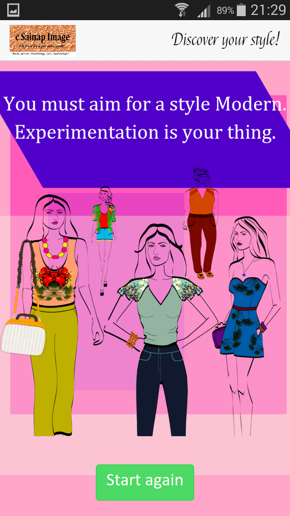 Discover your style with this app designed by an image consultant. Improve you personal image by just answering a few questions. Find out with style, clothes and attitude are best for you. Features: • Discover your style • Improve you personal image • Get fun! A creation of Gabriela Sainap (http://csainapimage.com)