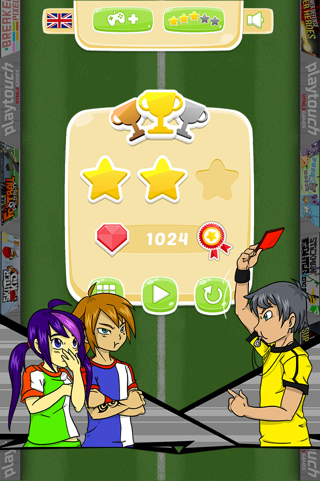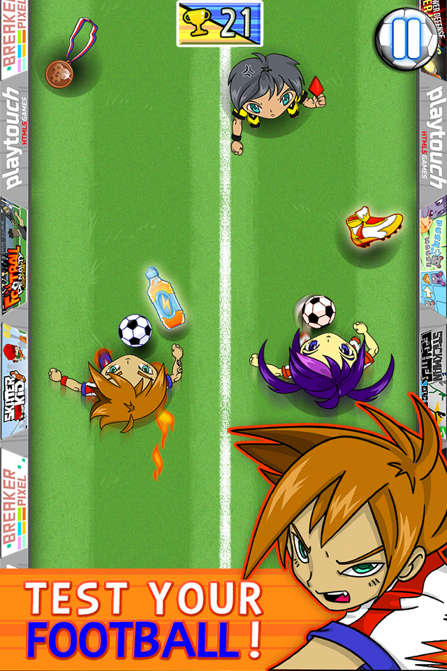 Yuki & Rina are 2 young talented football players. They showed incredible football skills and their coach and manager decided it was time to train them to become Pro Players in the famous “Soccer stars Major Football League”. Before becoming Pro Players, Yûki & Rina must pass the ultimate test, which is a combination of agility, skills and reflex. They have to run on the football field as fast as possible with the ball while dribbling opponents, jump over obstacle, collect items and bonus, and more… Thanks to their training they will unlock new tricks: MEGA JUMP, ENERGY DRINK, MAGIC GLOVES and FLAMING SHOES. Score Goals NOW. Yuki & Rina is a soccer runner game that will test your football gaming skills. You like Manga ? You like Football ? Then you will like Yuki & Rina Football. Play as Yûki & Rina and use the magic tricks to raise the Challenge. The ball is rolling and the crowd is eager to celebrate Yûki & Rina. It’s now time they become Pro Football Players. FEATURES • Run, Dodge, dribble, jump ! • Manga and Cartoon inspired graphics • Pass, dribble, shoot, score goals, tackle and more… • Get rewards for improving your players • Gain experience and improve your squad • Use Magic Tricks • Compare your score with your friends and Compete against them • Leaderboard