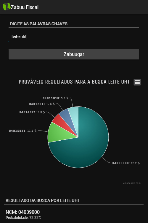 O ZabuuFiscal é um aplicativo voltado para auxiliar você na classificação fiscal dos mais diversos produtos em território nacional, baseado na classificação de NCM's, através de palavras chaves você faz a busca e o aplicativo lhe retorna os NCM's que se encaixam na sua busca e a probabilidade de acerto de cada um, incluindo além do NCM as alíquotas do IBPT Nacional e Internacional, CST PIS/COFINS de entrada e saída e CST IPI de entrada e saída.