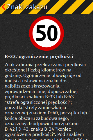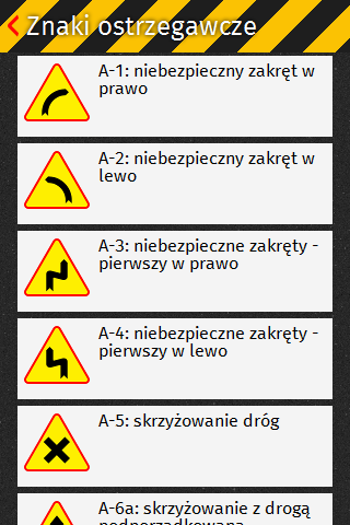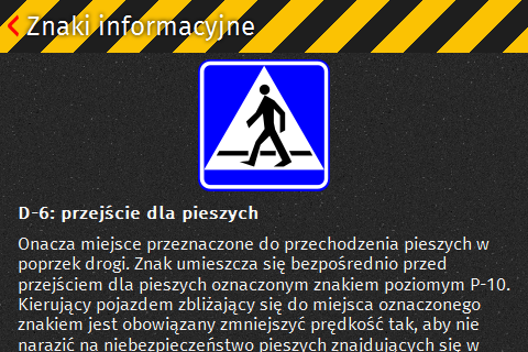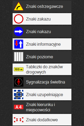 Road signs appearing on Polish territory. All signs are divided into categories. Each sign has: image, symbol, name and description.