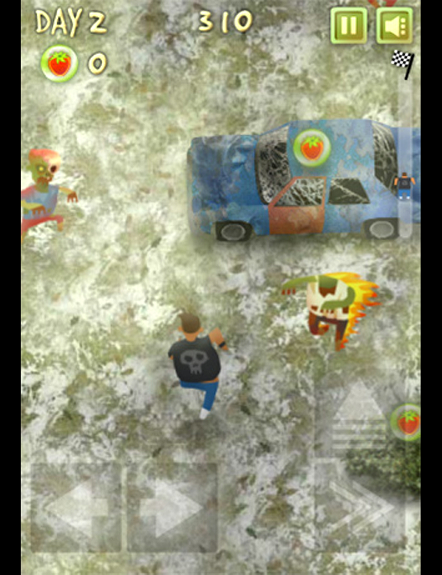 Run for your life! Avoid zombie attacks and jump over obstacles. Collect food as you run and use it to upgrade your abilities to become faster and stronger. Feeling brave? Barge into zombies to knock them down. Watch out: higher levels mean more zombies!