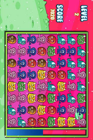 Destroy zombies by creating lines of 3 or more zombies of the same kind. You can move the zombies by tapping on them with your finger to swap the adjacent zombie.