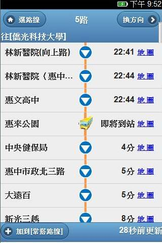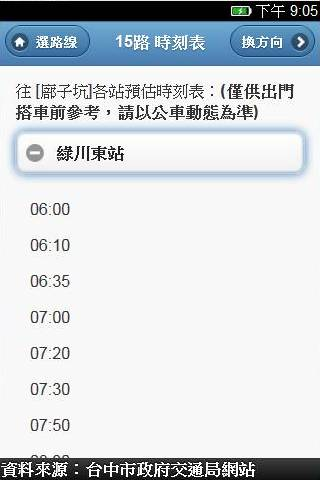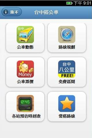 提供台中市公車動態、轉乘規劃、票價(現金及刷卡)、8公里刷卡免費區間、各站預估時刻表,讓妳(你)一次掌握所有搭公車資訊,在站牌等公車,悠遊自在,上車後一卡就通。 非政府官方軟體 資料來源:台中市政府交通局 keyword:Taichung city bus information